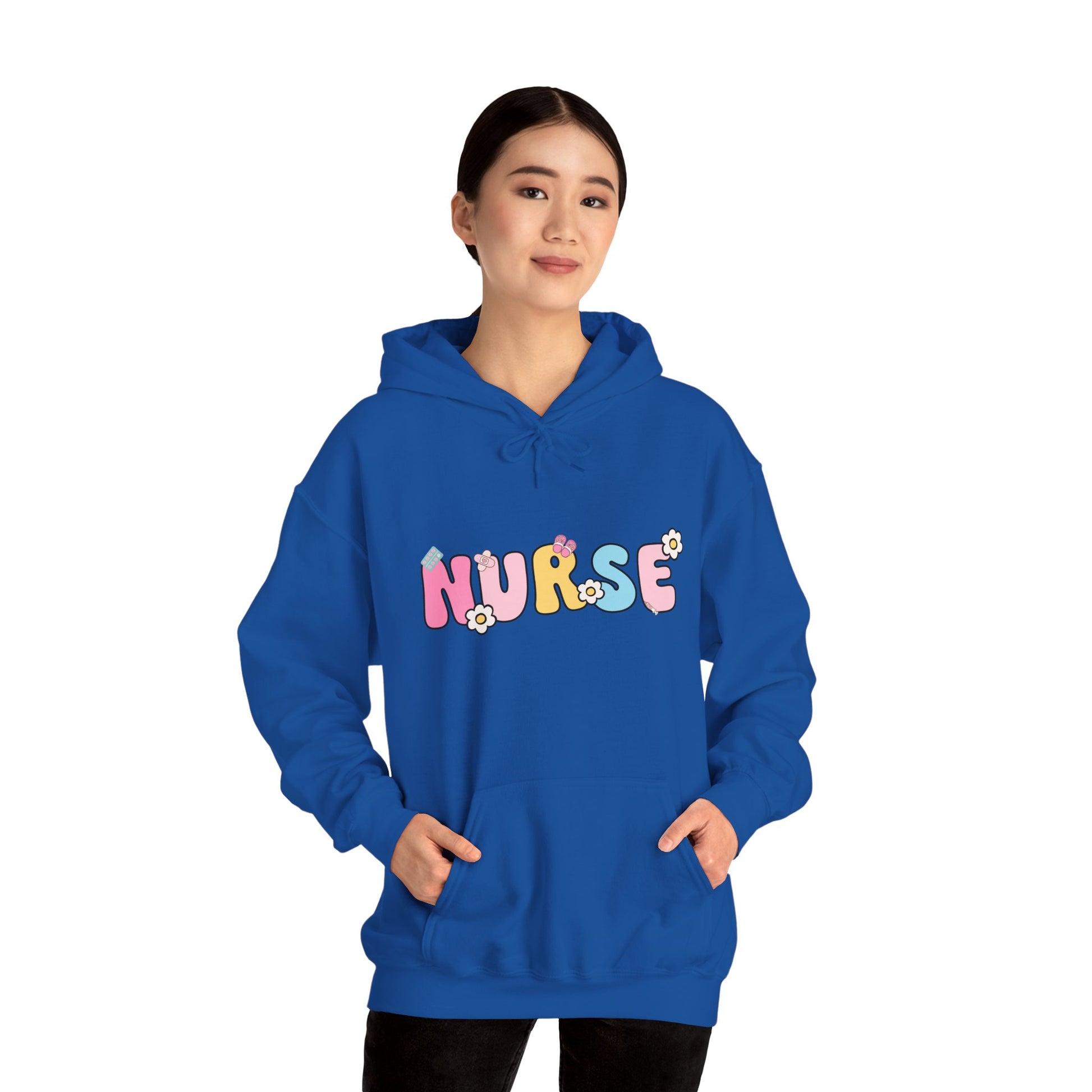 Stay cozy and stylish in this Unisex Heavy Blend™ Hooded Sweatshirt, perfect for any nurse looking to add a pop of fun to their wardrobe. Featuring a playful and colorful 'NURSE' graphic, this sweatshirt embodies a cheerful spirit, making it an ideal choice for casual outings or long shifts at the hospital. The soft fabric blend creates a warm and inviting feel, perfect for chilly days or nights. Designed to fit comfortably, it’s a great gift for healthcare professionals during Nurse Appreciation Week, holidays, or just to brighten someone’s day. The sweatshirt appeals to nurses and healthcare workers, providing them with a way to express their passion with flair.