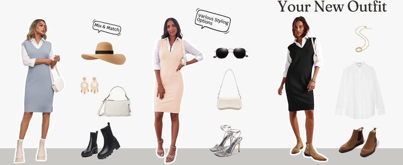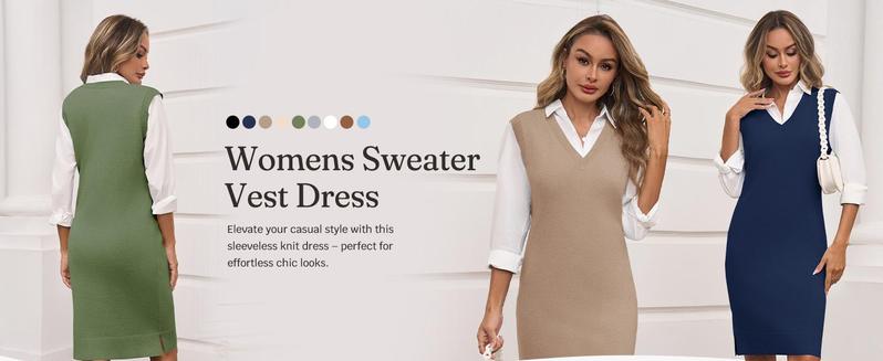 - Stylish Design: Our womens sleeveless sweater vest dresses feature a chic V-neck design and a relaxed silhouette, perfect for creating a trendy and comfortable look.
