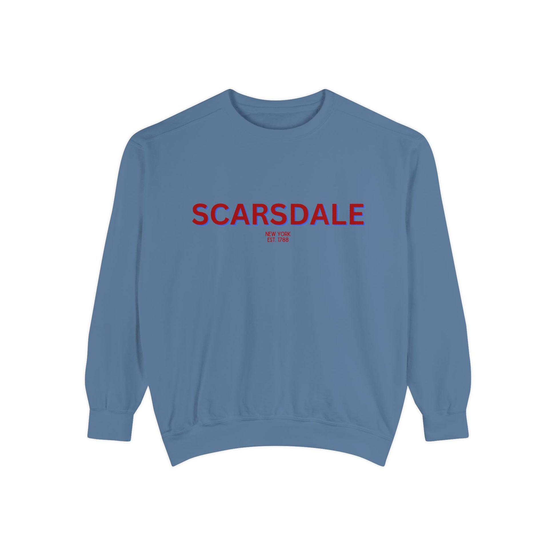 Scarsdale Cozy Sweatshirt, Unisex Garment-Dyed Crew, Casual Wear, Gift for Friends, Fall Fashion, Lounge Style