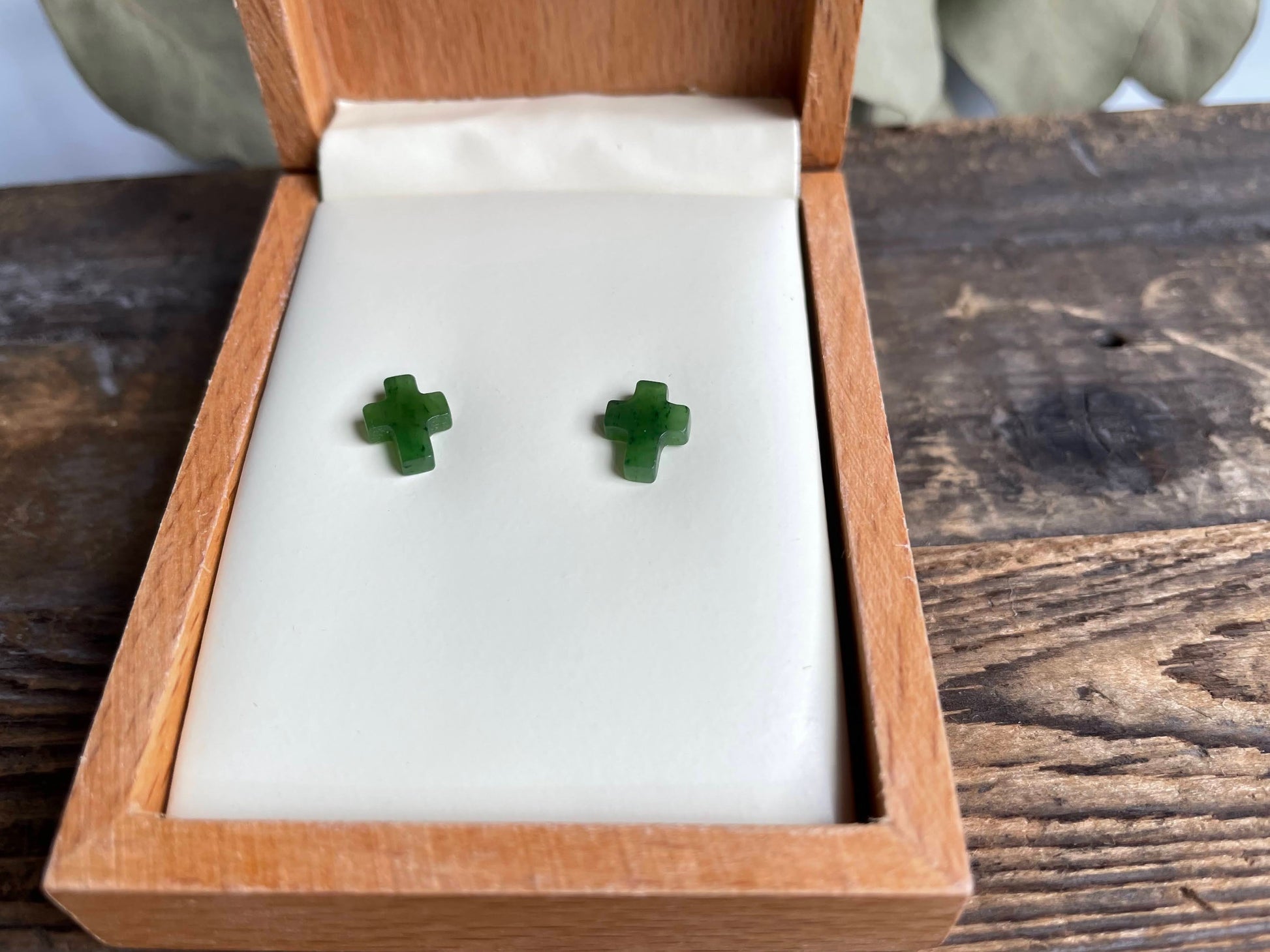 Canadian Nephrite Jade Small Cross Earrings, set in Sterling Silver